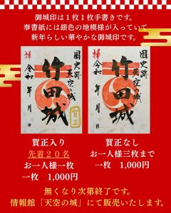 情報館「天空の城」で販売している季節の御城印の新年デザインが発売されます。
